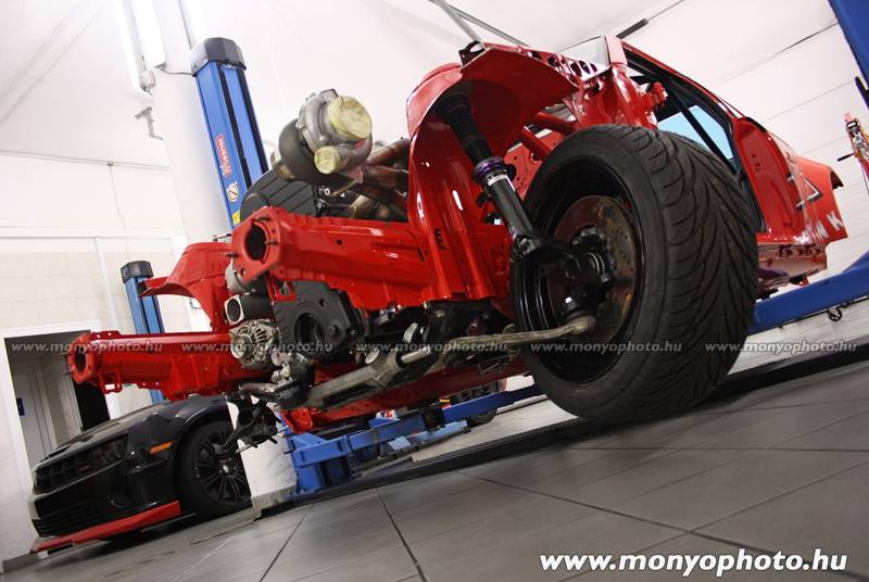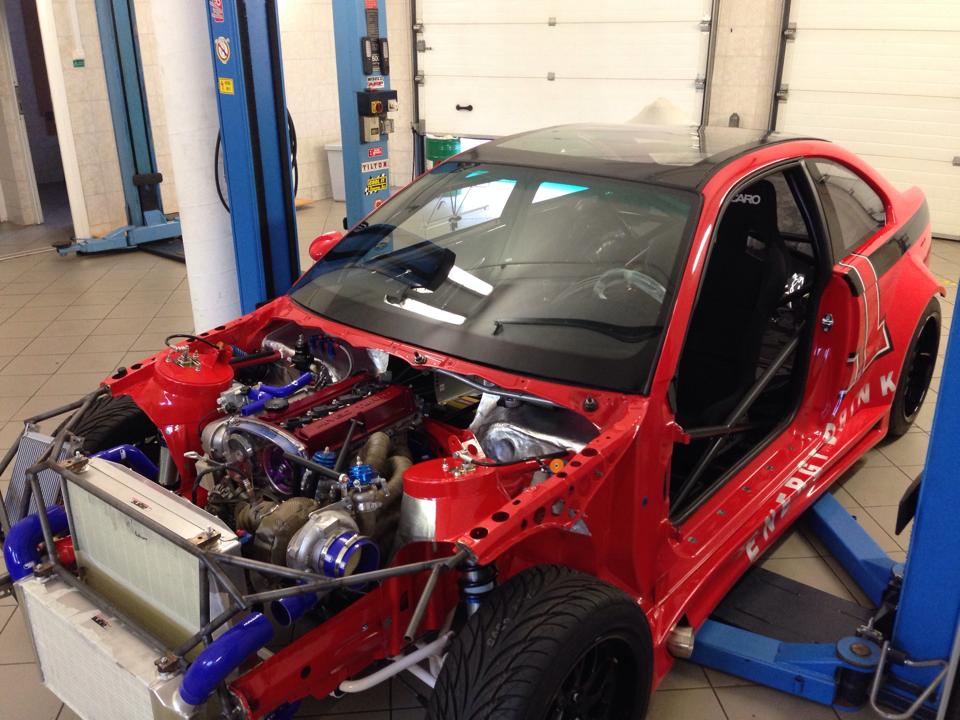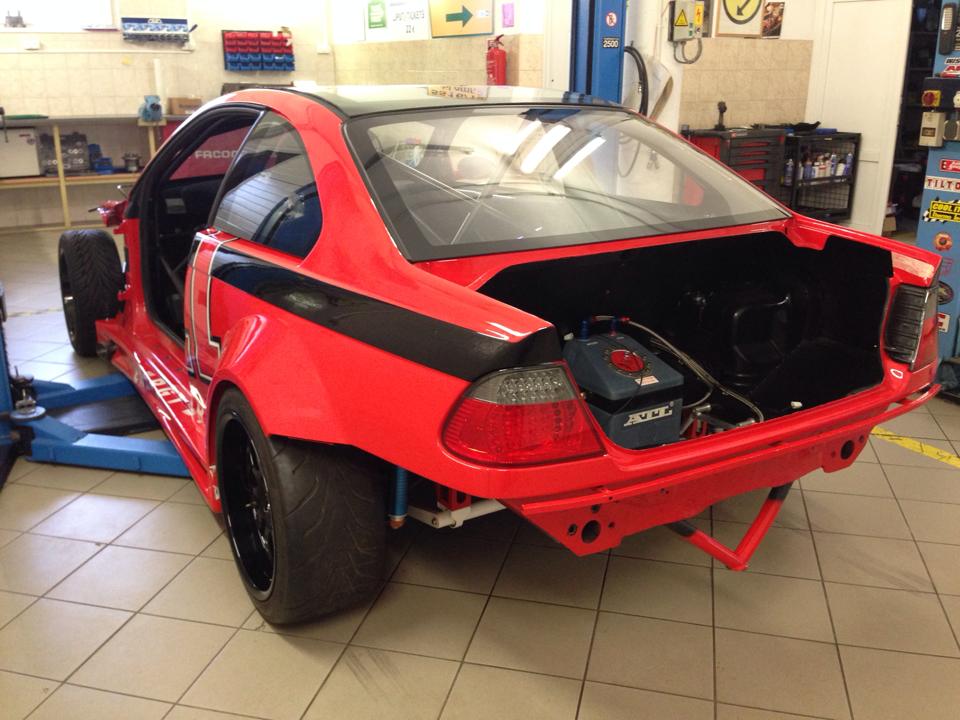 - Nem kis átalakításokon esett át a BMW. Súlya 1320 kg-ról 1000 kg alá csökkent, a gyári 343 LE E46 motor helyét pedig egy LANCER 4G63 vette át!
